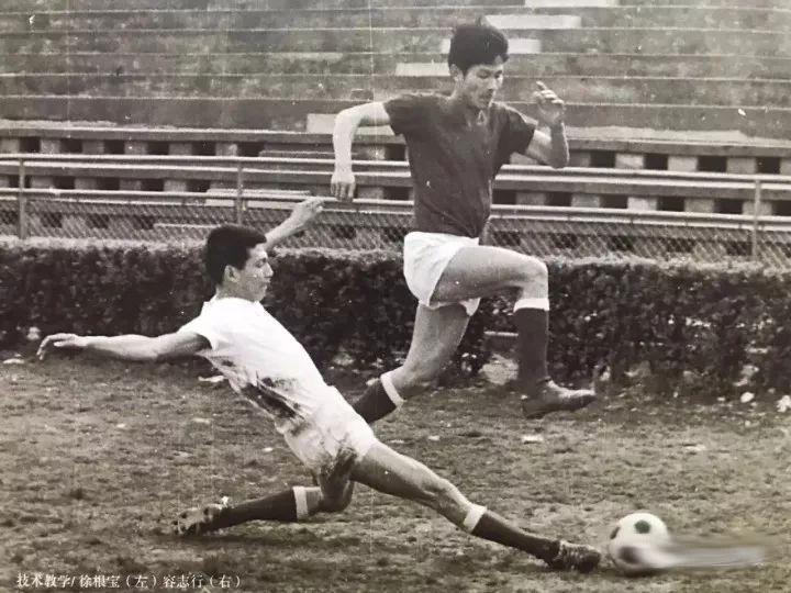 这是当年国足训练中徐根宝铲断容志行的技术教学动作。